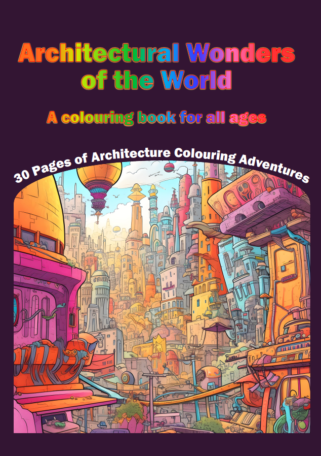 Immerse yourself in Architectural Wonders, an all-ages colouring book by Inside Out Gear, featuring 30 captivating illustrations of interesting and famous buildings from around the world. Explore a diverse collection of architectural marvels, from ancient monuments and iconic landmarks to contemporary masterpieces and unique structures, as you unleash your creativity.