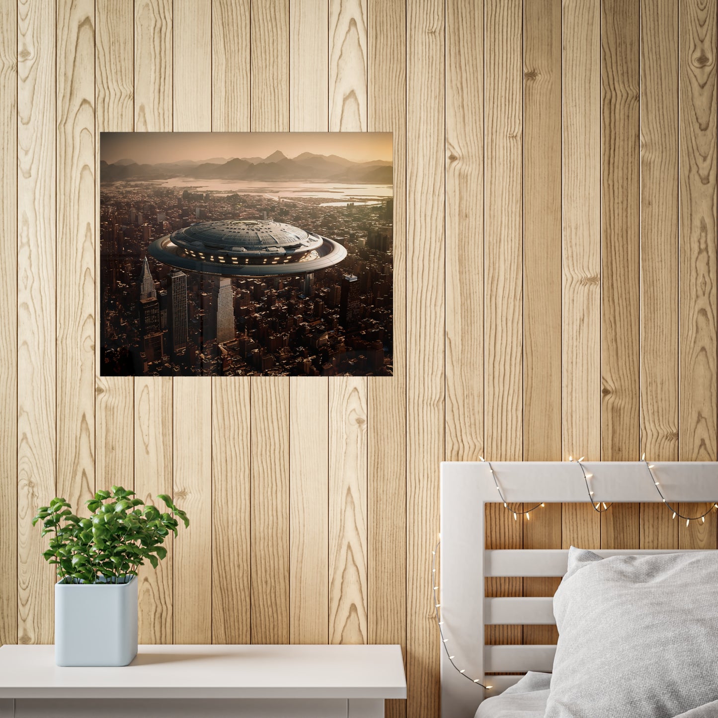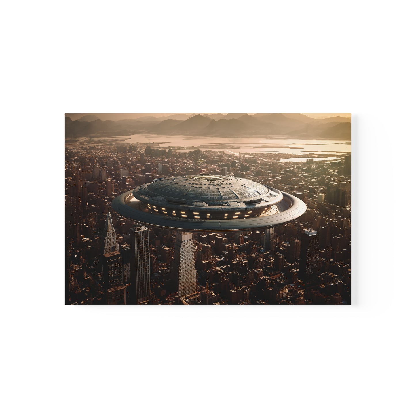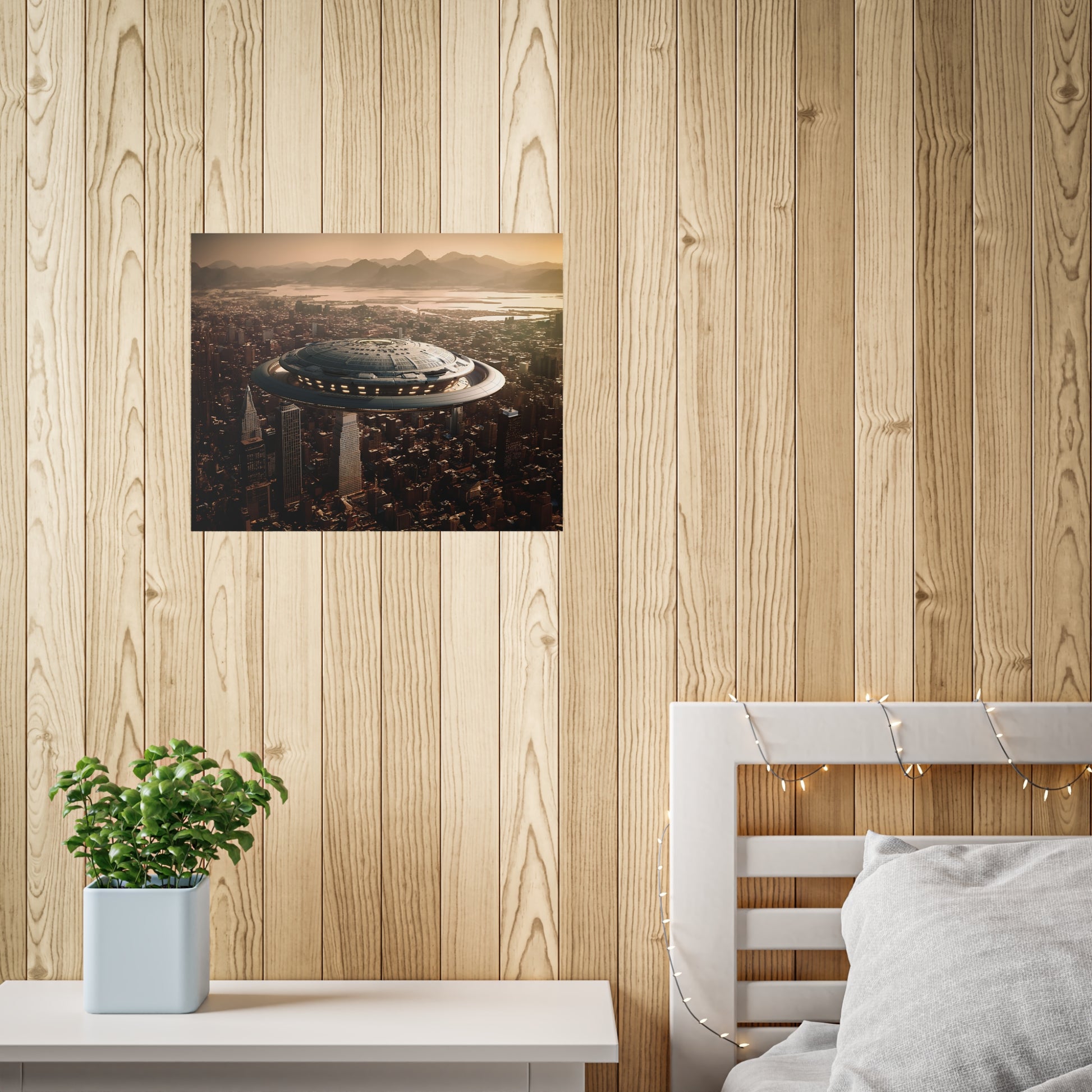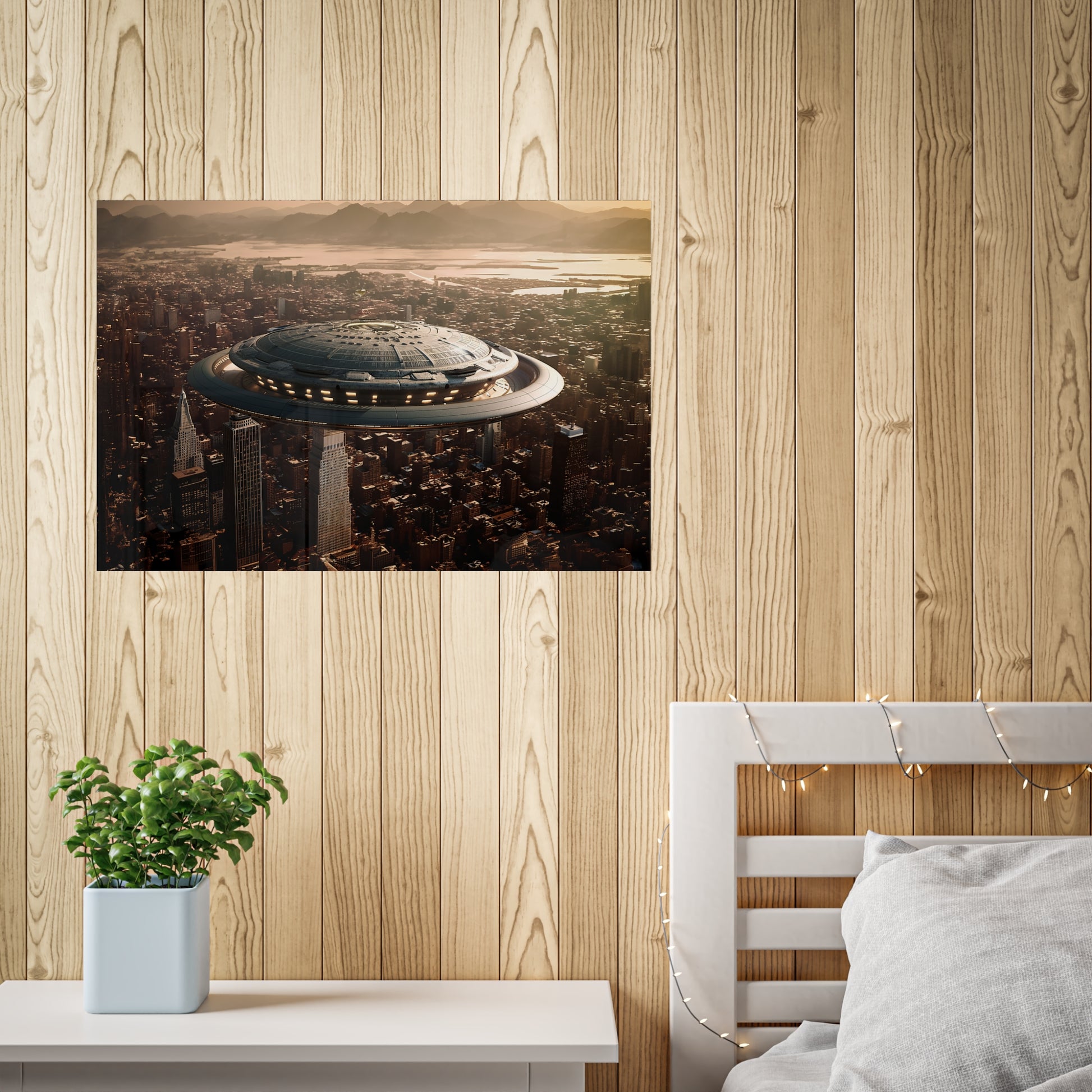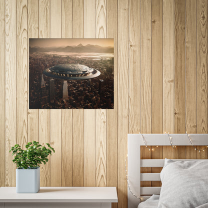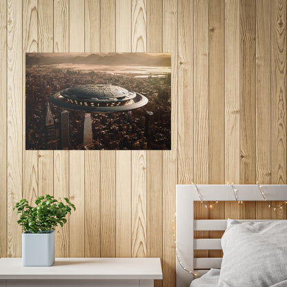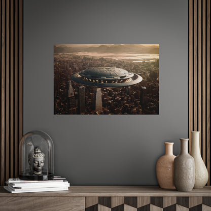 In the bustling metropolis of New Haven, the night sky was unexpectedly pierced by a brilliant streak of light. Citizens looked up in awe as a massive UFO descended upon the city, its ethereal glow illuminating the streets below. This extraordinary event came to be known as the "Celestial Intrusion."