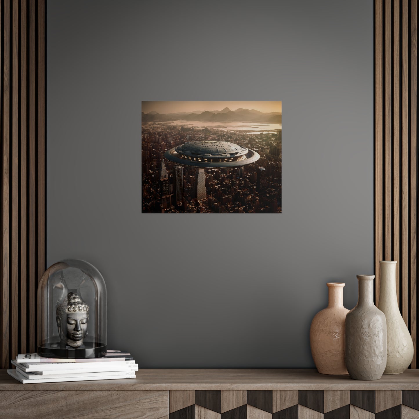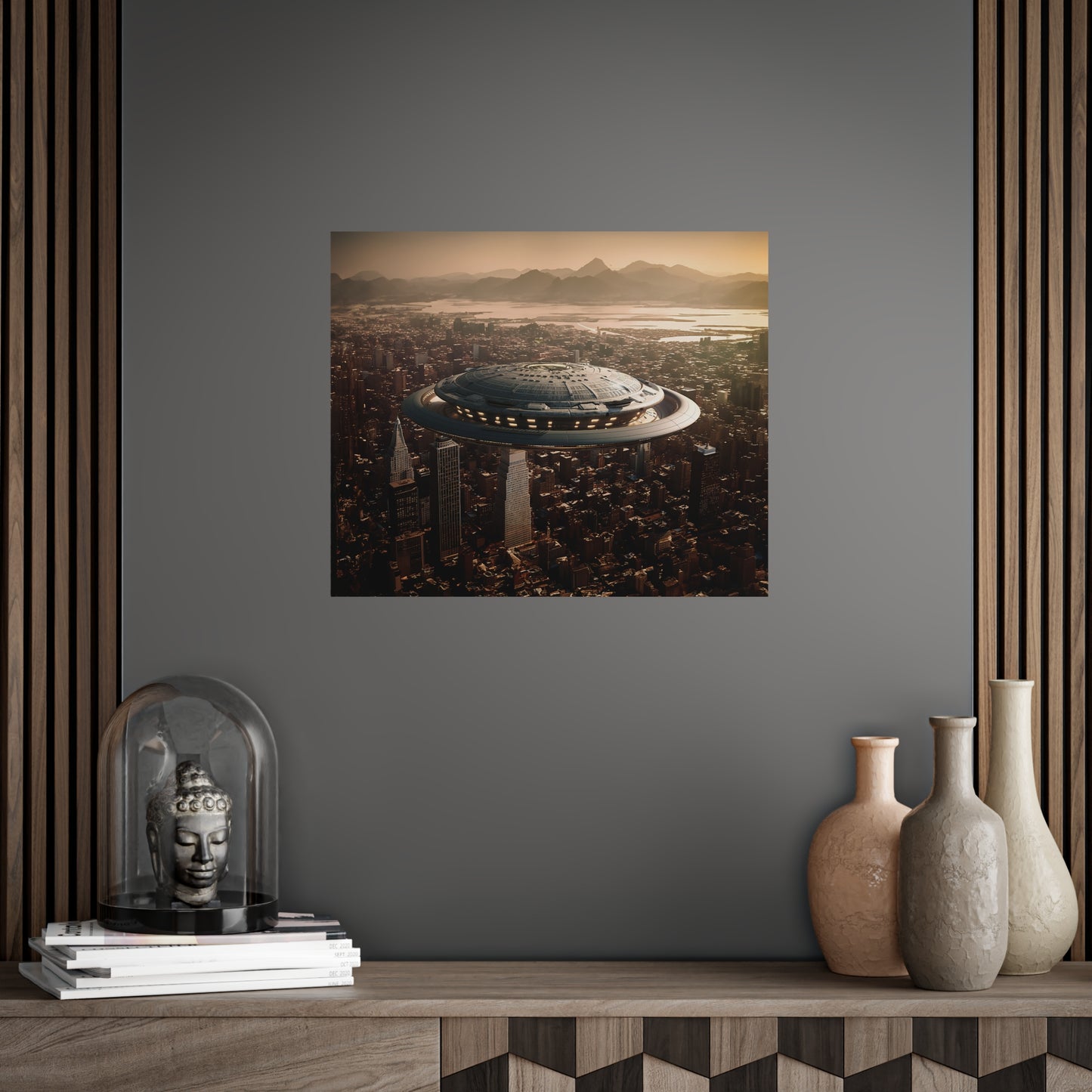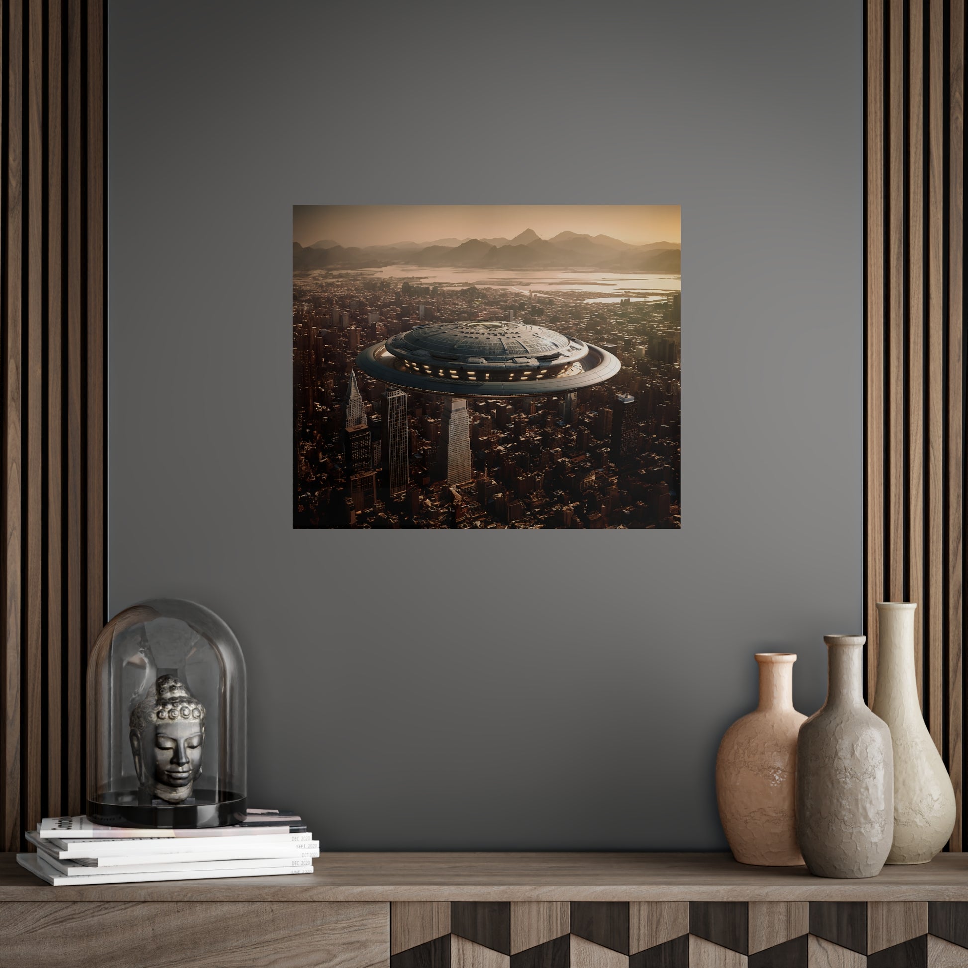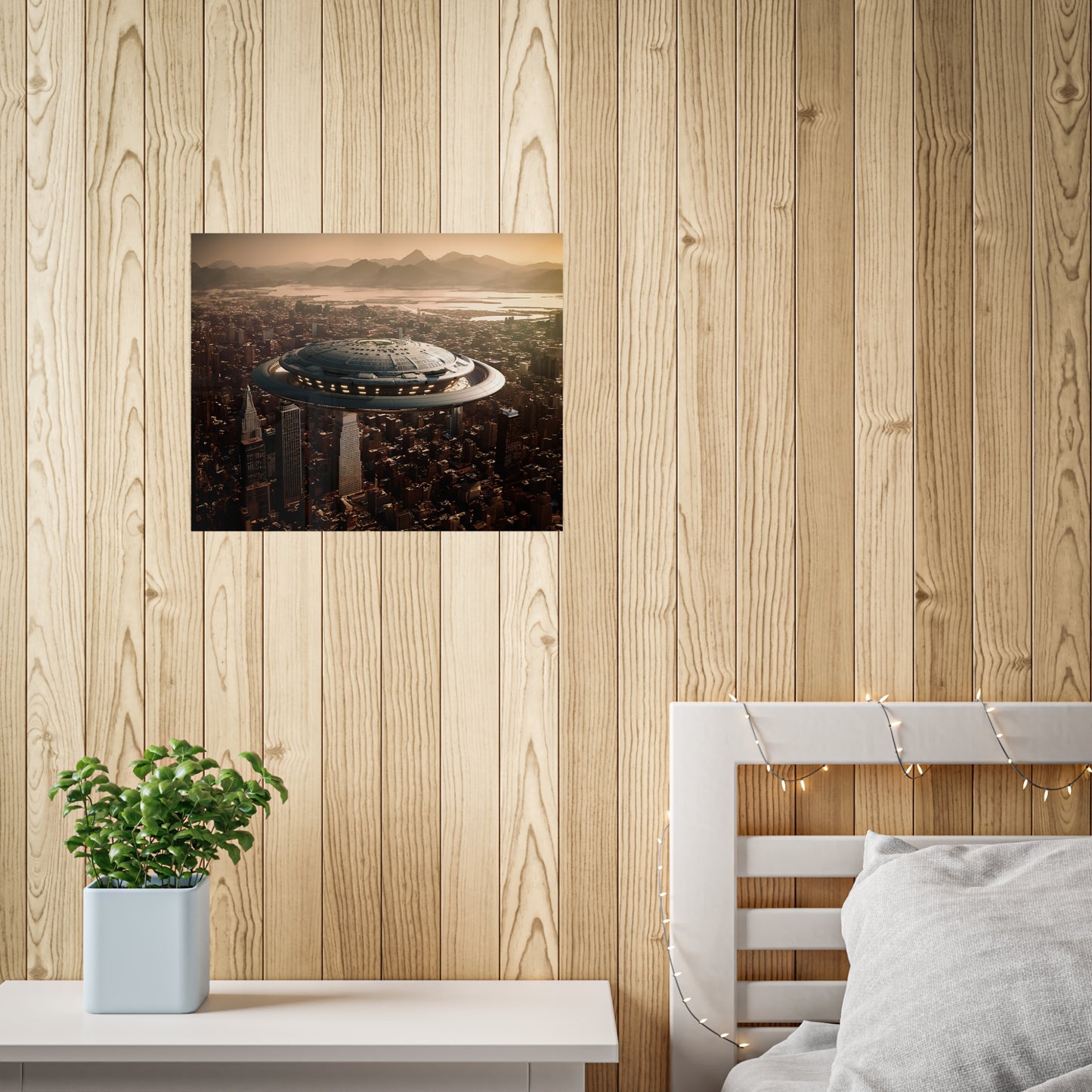 In the bustling metropolis of New Haven, the night sky was unexpectedly pierced by a brilliant streak of light. Citizens looked up in awe as a massive UFO descended upon the city, its ethereal glow illuminating the streets below. This extraordinary event came to be known as the "Celestial Intrusion."