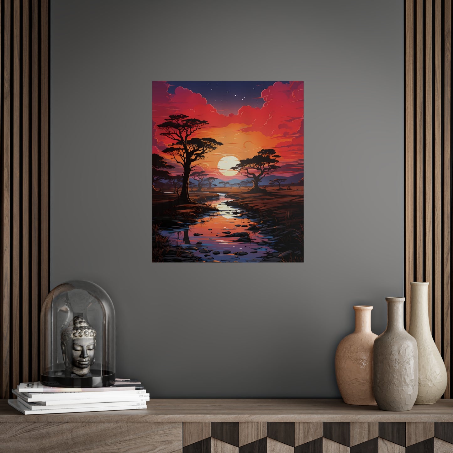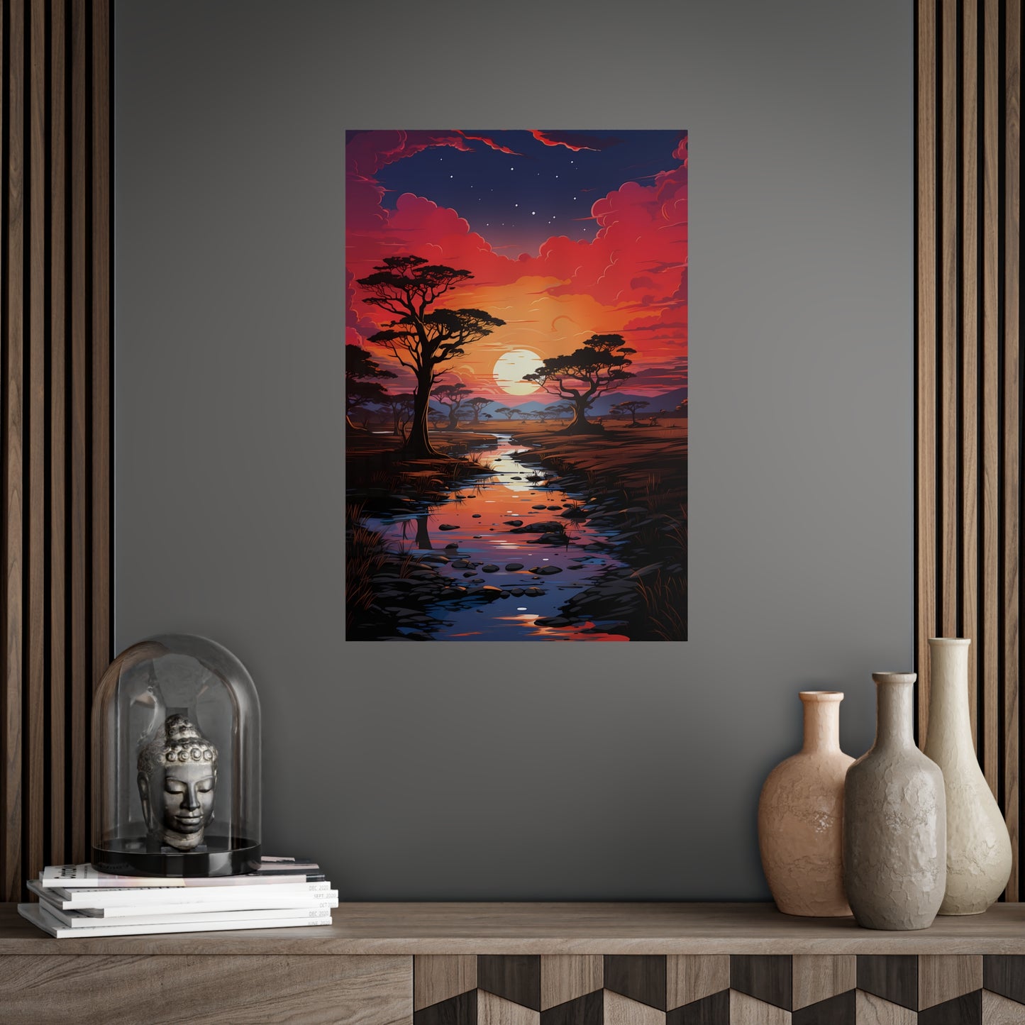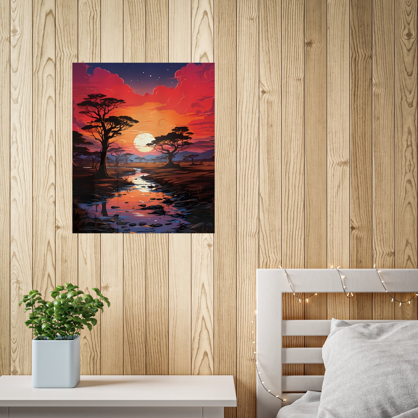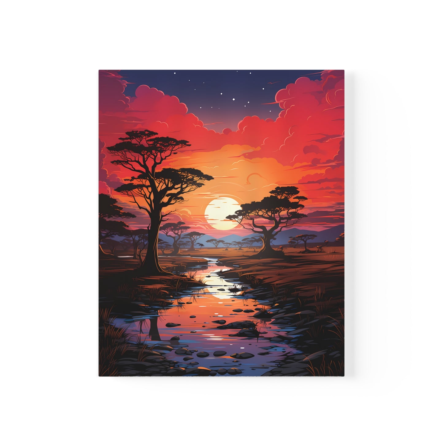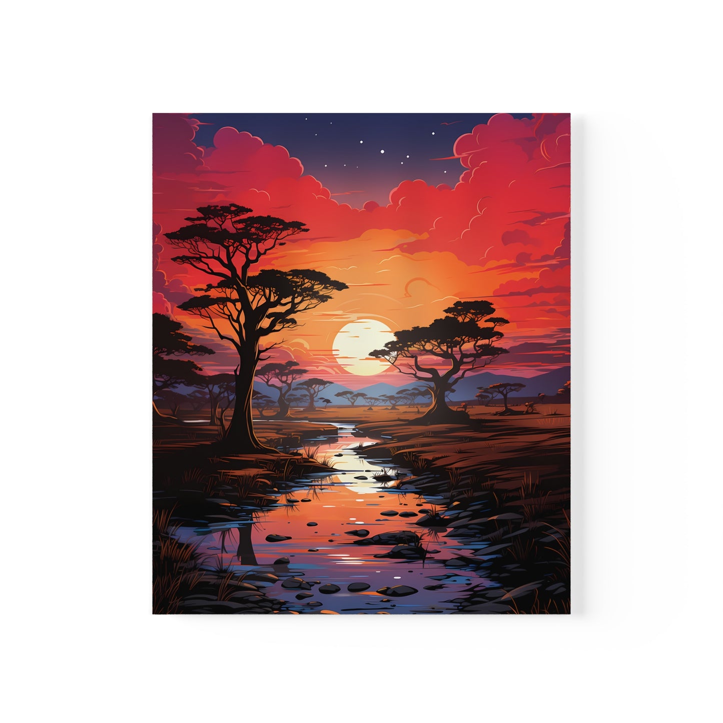 "Safari Sunset" is a mesmerizing digital masterpiece that transports viewers to the heart of the African savannah at the enchanting moment when the sun bids farewell to the day. The rich, warm palette bathes the landscape in soft, golden hues, casting dramatic shadows across the vast savannah. Silhouetted acacia trees and meticulously detailed wildlife add an element of grandeur and timelessness to the scene. As the sun dips below the horizon, the sky ignites with fiery oranges, deep purples, and soft pinks, creating a breathtaking tableau that captures the essence of the African wilderness. This artwork invites viewers to immerse themselves in the serene beauty of the savannah, celebrating both its awe-inspiring landscapes and the urgency of preserving these precious ecosystems for future generations.